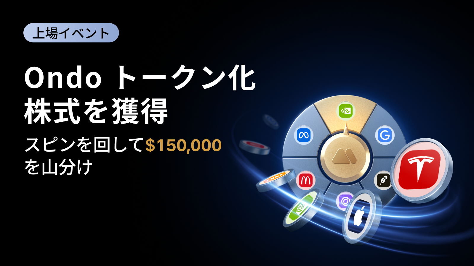 早期上場開始を記念して、限定の Ondo Global Markets ラッキースピンイベントが開催されます。簡単なタスクを完了し、スピンを回して、$150,000相当のトークン化株式を山分けしましょう!