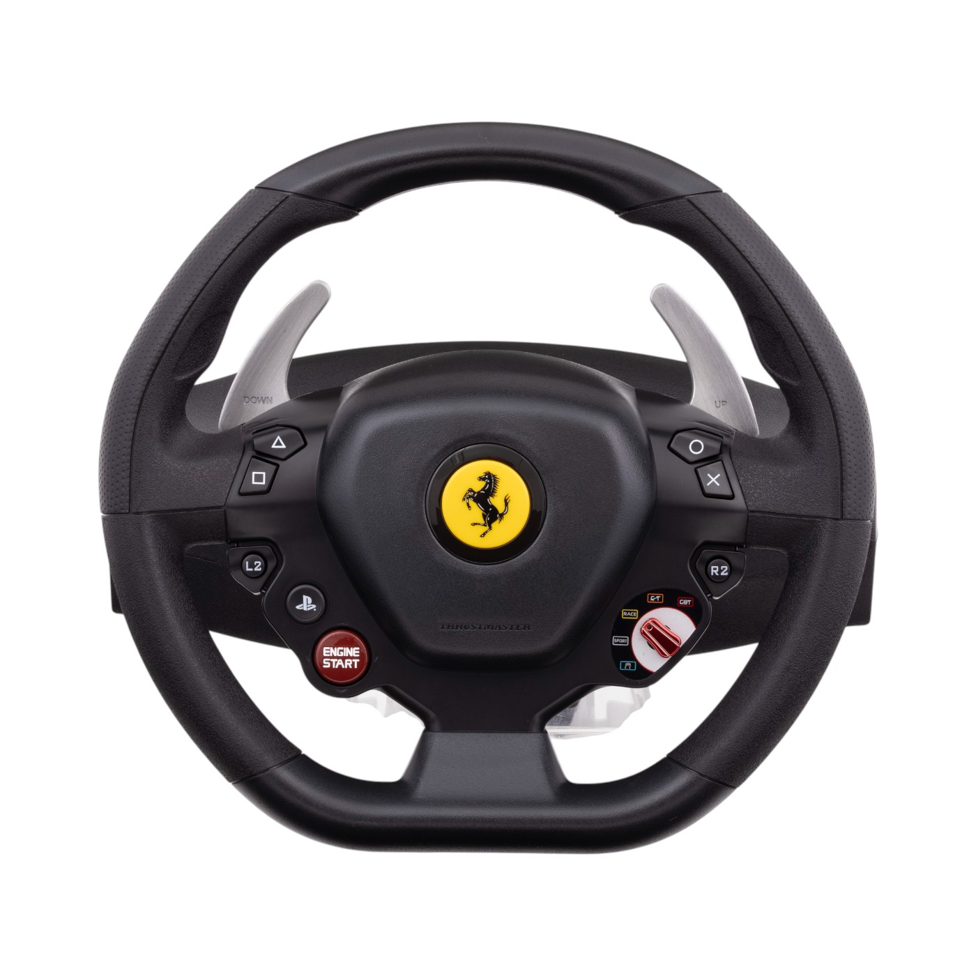 「T80 Ferrari 488 GTB Edition」は、Thrustmasterが提供するエントリーモデル。Ferrari 社と PlayStation4 の公式ライセンスを取得しており、ハンドルが「Ferrari 488GTB」の8:10スケールのレプリカデザインです。PlayStation 4とPCなど幅広い互換性を持ち、Bungee Cord機構による安定した操作を実現しています。