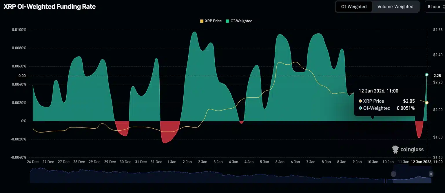Métrica da taxa de financiamento ponderada por OI do XRP | Fonte: CoinGlass
