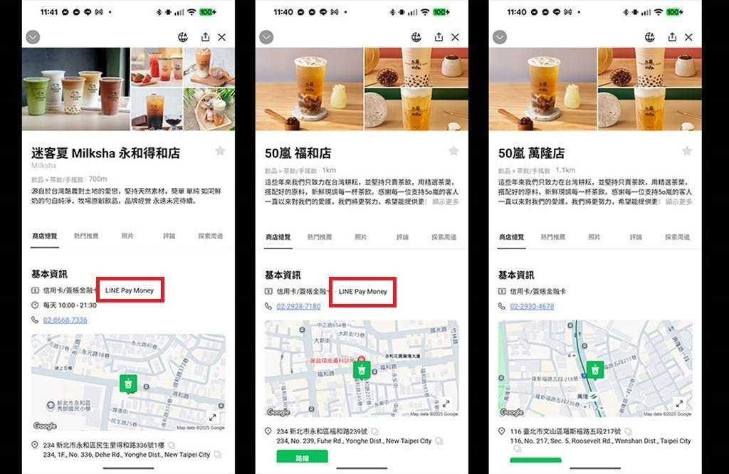 ▲須注意,品牌是否支援Line Pay Money以各分店公告為主,例如50嵐福和店可使用Line Pay Money,但50嵐萬隆店不支援此服務。