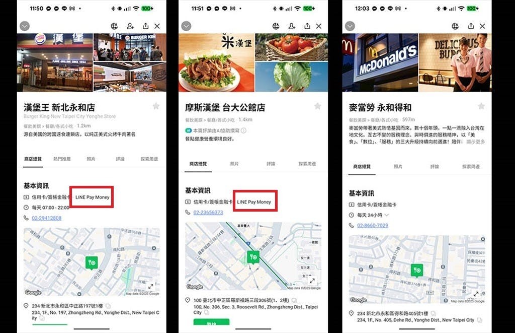 ▲以速食店為例,漢堡王、摩斯漢堡皆支援Line Pay Money消費,不過麥當勞以Line Pay綁定信用卡或簽帳金融卡消費為主。