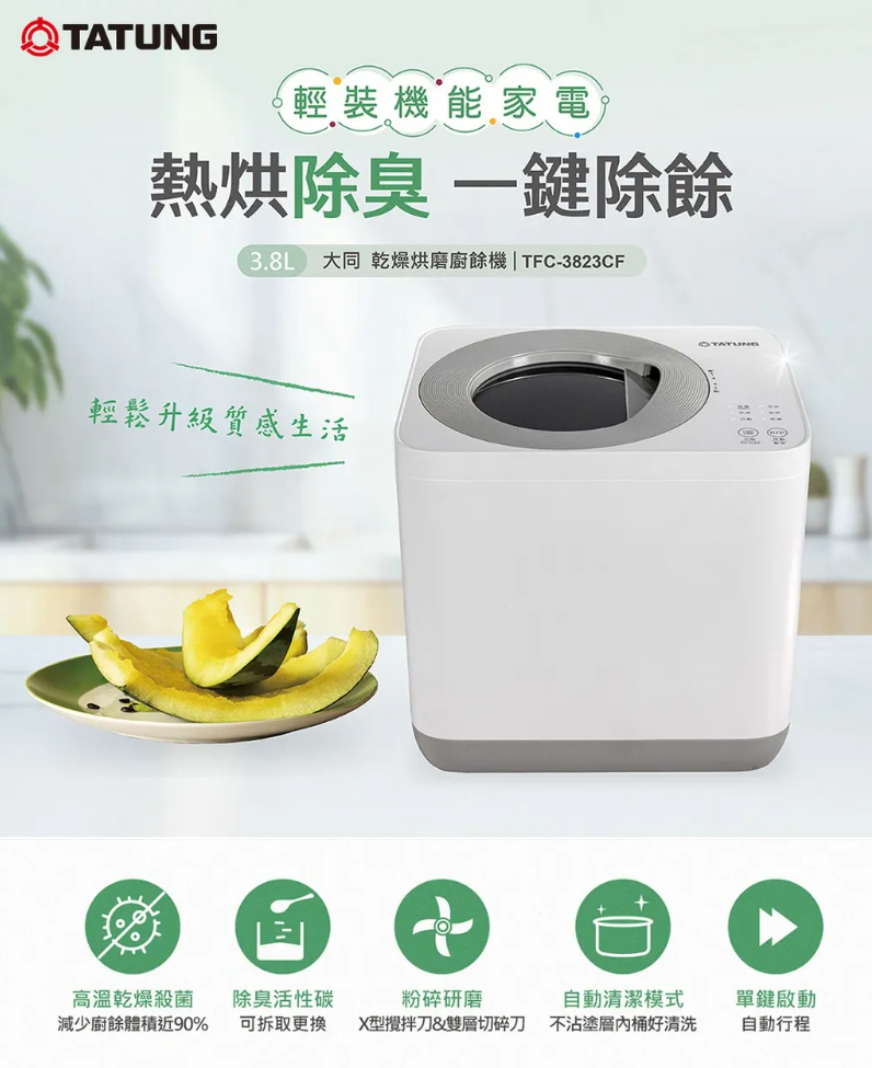 廚餘機算是個高單價的家電,不過近期台中市民可申請5000元廚餘機補助,這讓一票6000元左右的廚餘機顯得相當超值,畢竟只要花不到2000元就有廚餘機可用相當方便且低成本。但這個價位的廚餘機大多是沒聽過的品牌,像是Panasonic等品牌則又超過這個價格區間,大同這款TFC-3823CF恰巧在這區間中,且為熟悉的品牌,功能上是加熱烘乾並且研磨的款式,能減少廚餘體積與氣味,最重要的是還有自動清洗功能,不用手洗就是方便。價格方面6710元,若配合台中廚餘機補助,則只要花1710元相當不錯。