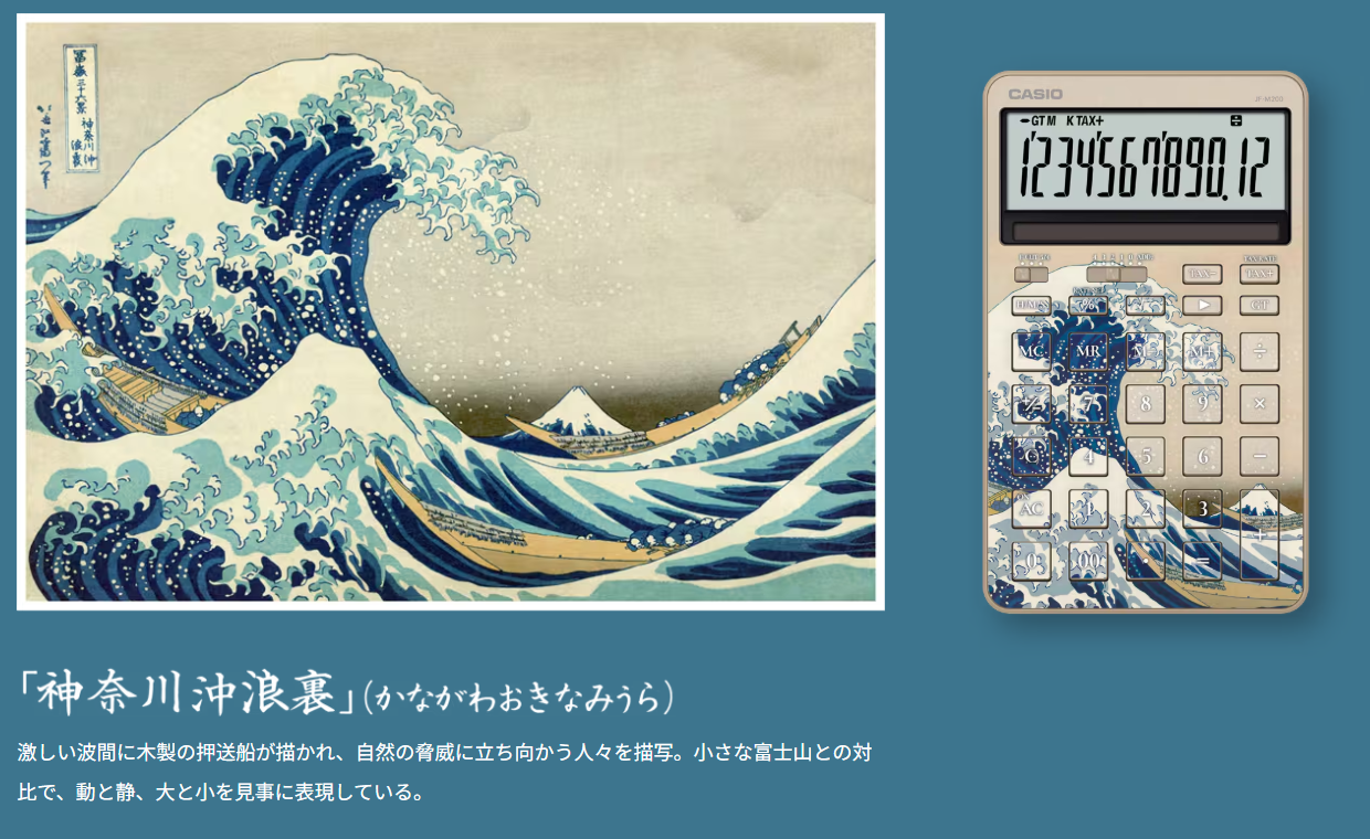 葛飾北齋的畫所聯名的產品更是數不勝數,涵蓋日用品、3c、文具、時尚與藝術品等等。而這次卡西歐計算機選擇了北齋最廣為人知的《富嶽三十六景》作為主題,相信會有不少人感興趣。