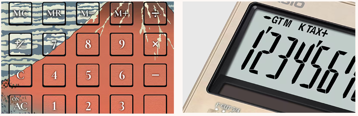 為了配合浮世繪的日式風格,計算機按鍵的數字與符號字體也特別改為「明朝體」,使整體視覺更具協調感。