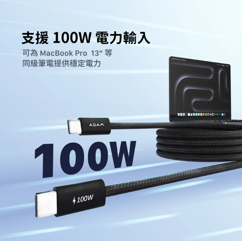 【ADAM 亞果元素】iLinio C100 USB-C 對 USB-C 100W 磁吸充電線1M 1米