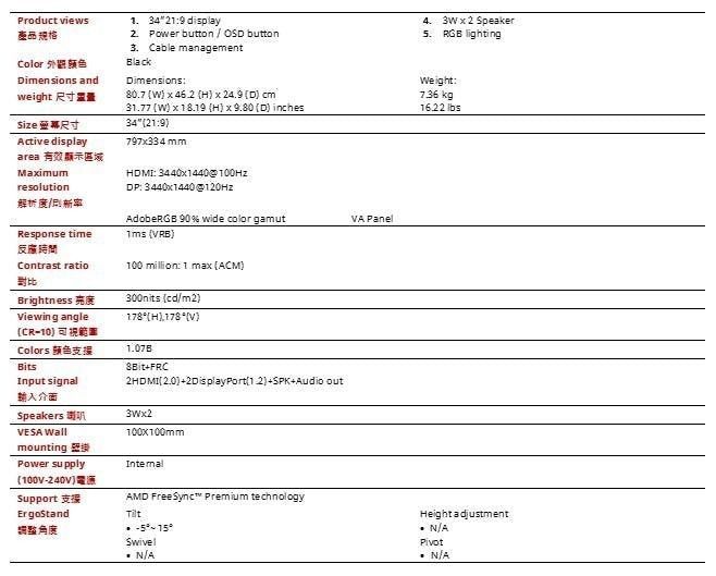 34吋曲面螢幕體積不小,需要80cm以上的桌面空間才行,這點購買前需要特別注意。如果你有足夠空間容納它,它搭載34吋VA面板,解析度為UWQHD等級也就是3440x1440,比起常見的2K螢幕來說,橫向的顯示範圍更大。